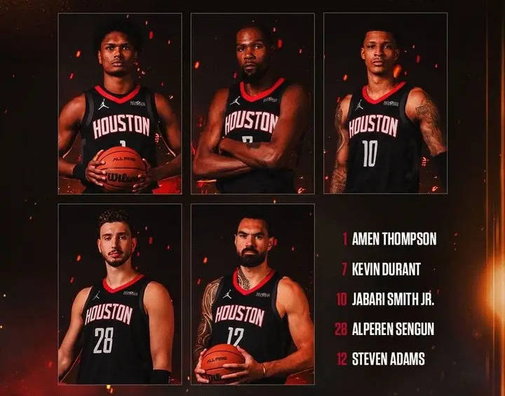 杜兰特领衔死亡五大!火箭揭幕战首发平均身高2米09